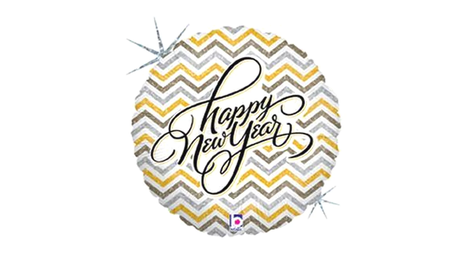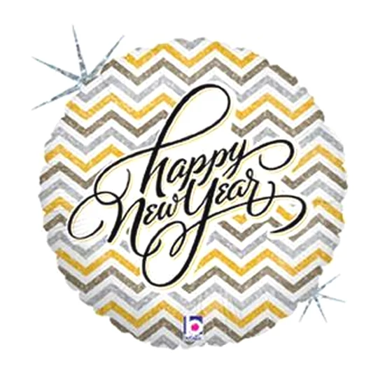 46 cm-es Happy New Year feliratú, hologrammos fólia lufi
