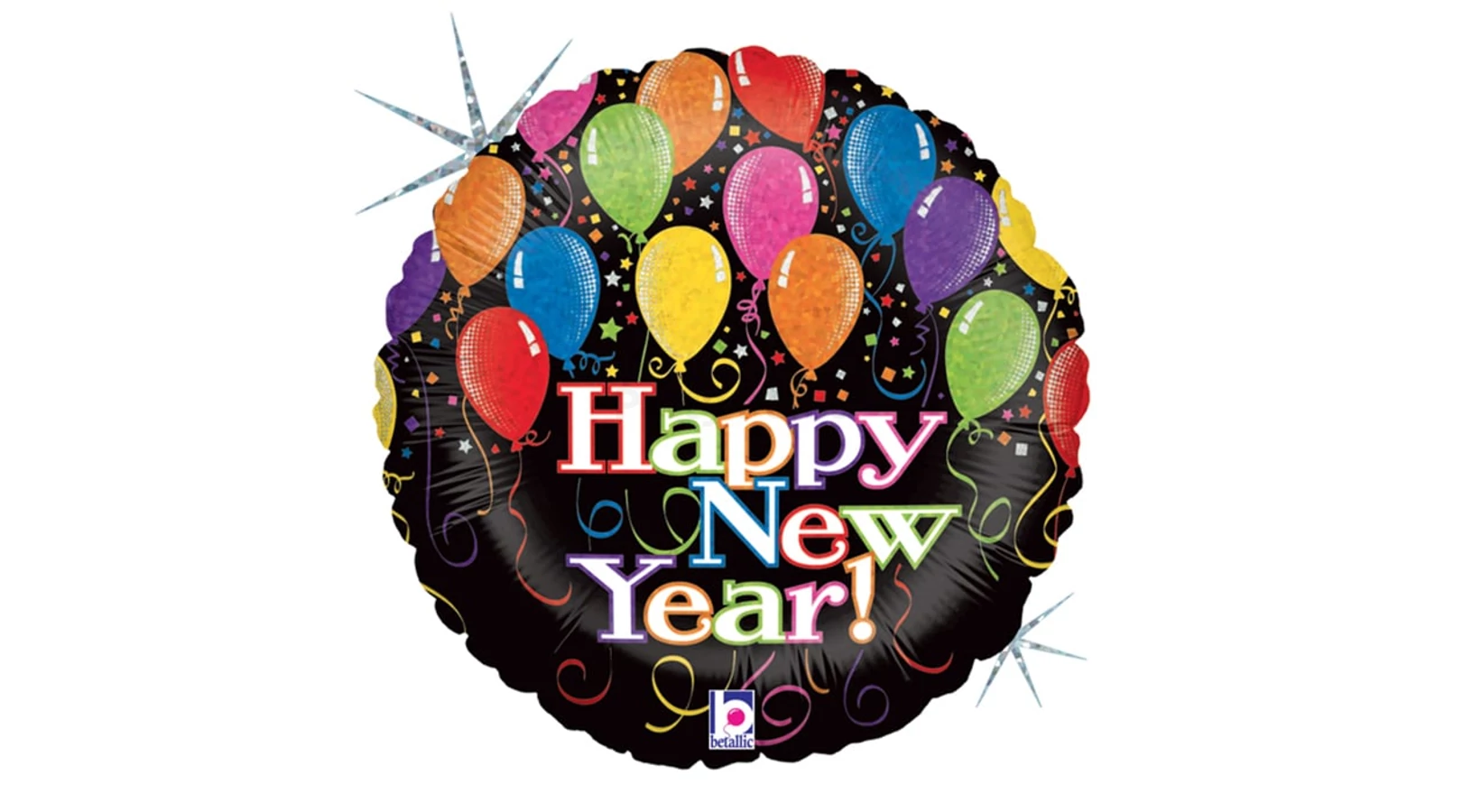 46 cm-es Happy New Year feliratú, lufis, hologrammos fólia lufi. Kezdődhet a végső visszaszámlálás és a tűzijáték! Az új évet ünnepeld meg egy pohár pezsgővel és ezzel a Happy New Year hologrammos fólia lufival. Önzáró szeleppel rendelkezik. Héliummal és levegővel is fújható.