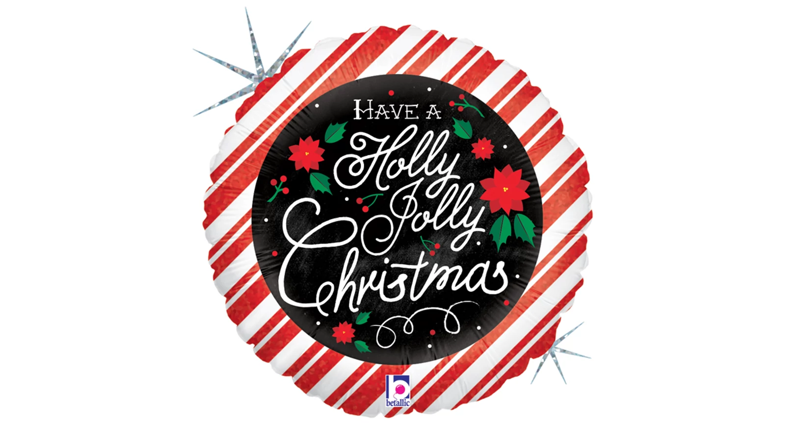 46 cm-es Holly-Jolly Christmas feliratú, hologrammos fólia lufi. Varázsold ünnepi hangulatúvá a lakást, és használd díszítésként ezt a kedves, Holly-Jolly Christmas feliratú fólia léggömböt. Kiegészíthető más alkalomhoz illő fólia vagy gumi léggömbökkel. Levegővel és héliummal is tölthető.