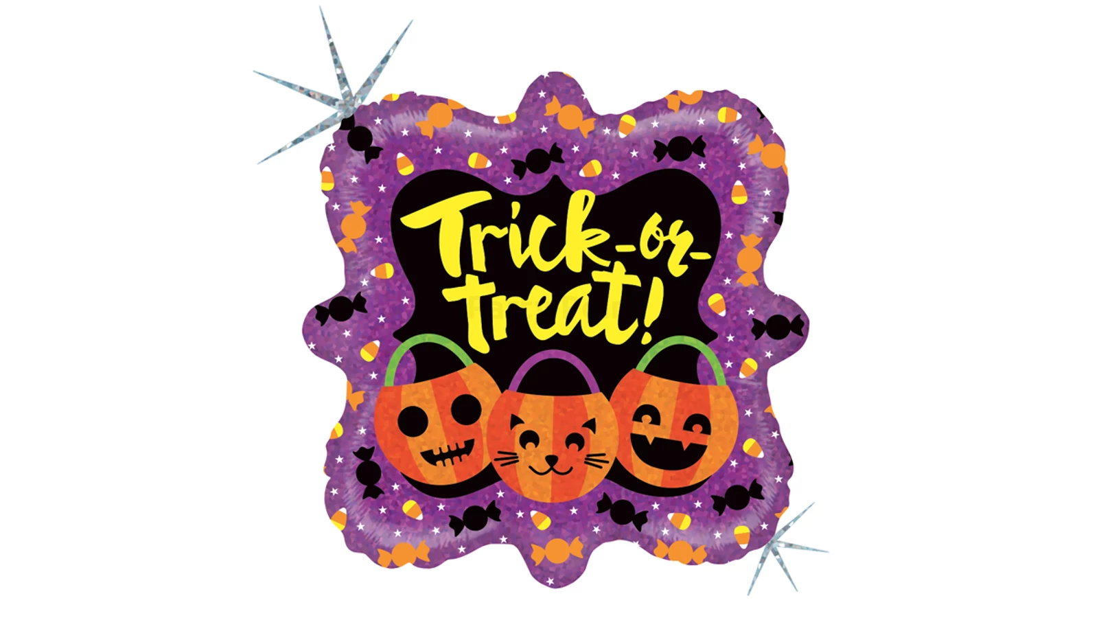 46 cm-es Trick or Treat feliratú, tökös hologrammos fólia lufi. Ezzel a tréfásan kísérteties, "Trick or Treat" fólia lufival feldobhatod a Halloween party dekorációt. Válassz hozzá pókos vagy szellemes fólia lufit, és biztosan eléred a várt hatást.