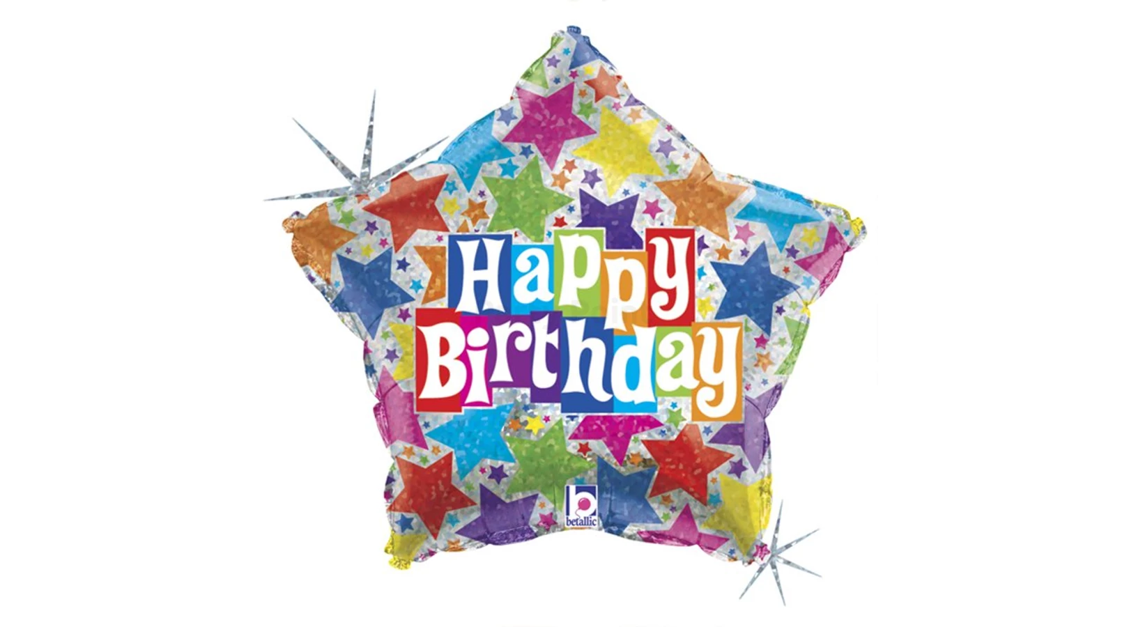 48 cm-es hologramos Happy Birthday csillag fólia lufi. Ez a csillagokkal díszített csillag alakú fólia lufi Happy Birthday felirattal remek választás egy születésnapi party dekorációjához, de ajándéknak is szuper. Mérete: 45 cm. Héliummal és levegővel is tölthető, önzáró szeleppel rendelkezik.