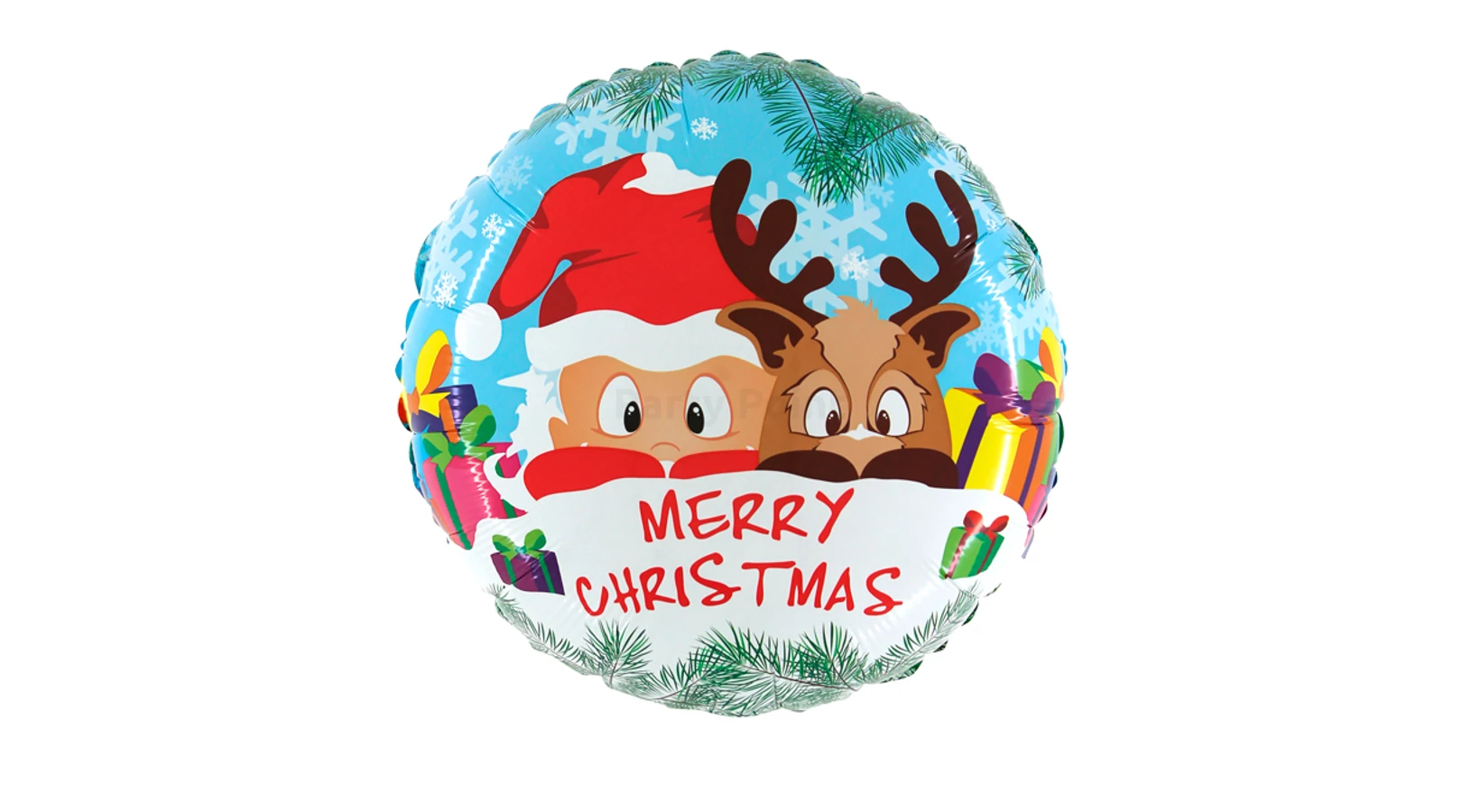 54 cm-es Merry Christmas feliratú télapós, rénszarvasos fólia lufi