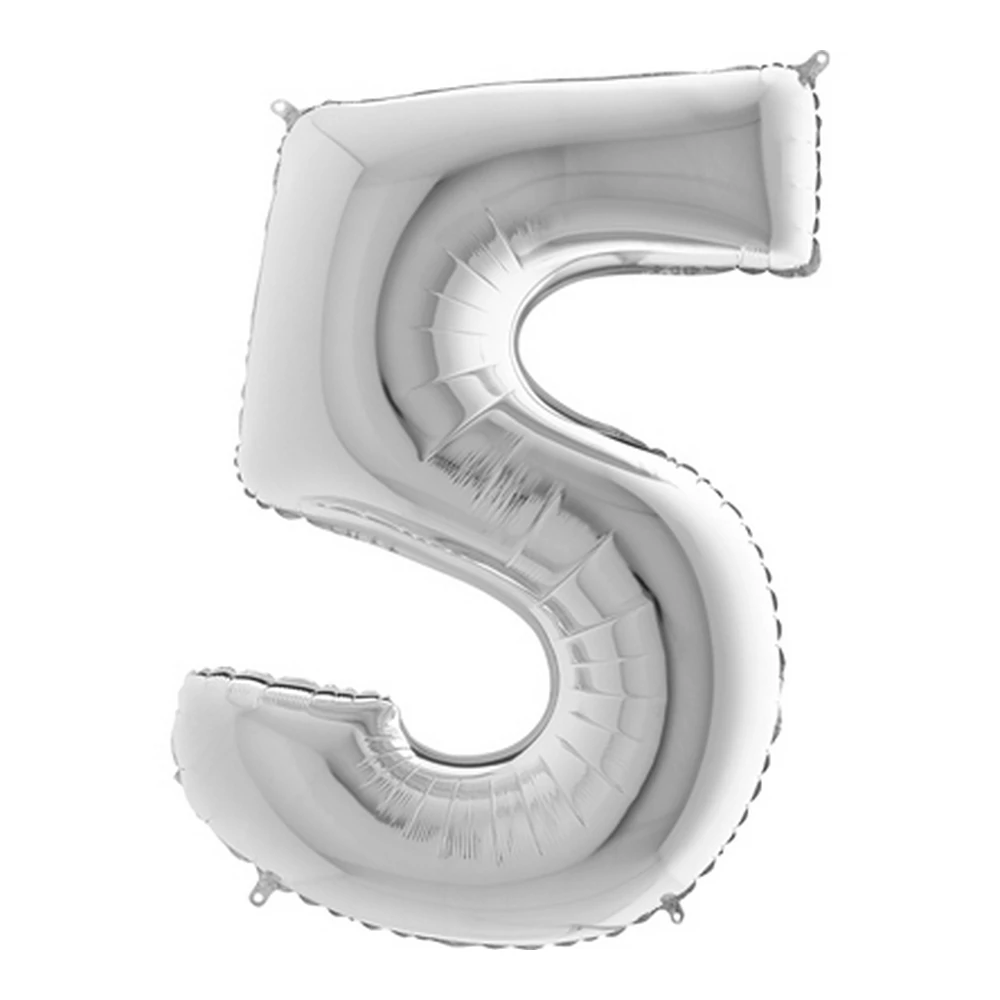 65 cm-es ezüst színű 5-ös fólia lufi.