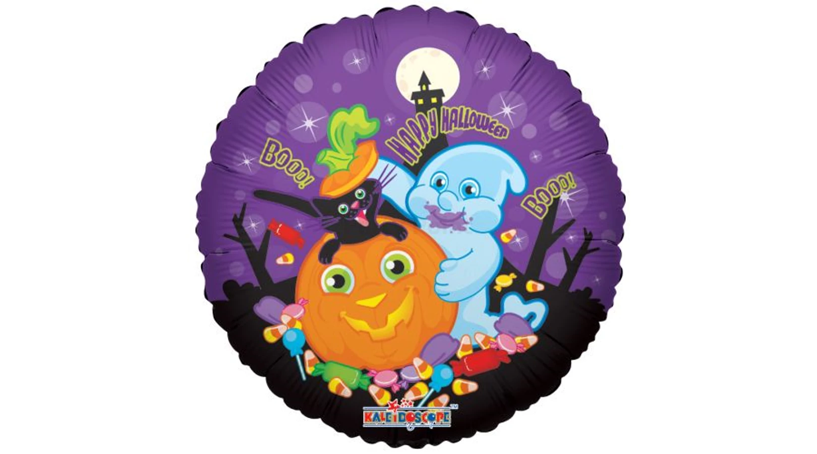 90 cm-es Tökös-szellemes fólia lufi. Minden nagyszerű Halloween partyhoz elengedhetetlen az izgalmas dekoráció! Dobd fel a bulit ezzel a nagyméretű, tökös-szellemes fólia lufival. A díszítést kiegészítheted hozzá illő girlandokkal, lampionokkal és dekorációs matricákkal is. Levegővel és héliummal is tölthető; önzáró szeleppel rendelkezik.
