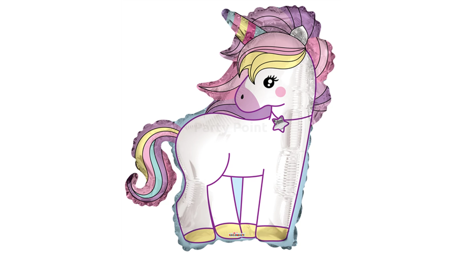 Unikornis alakú fólia lufi , önzáró szeleppel rendelkezik, felfújható héliummal és levegővel egyaránt.Mérete: 90 cm,