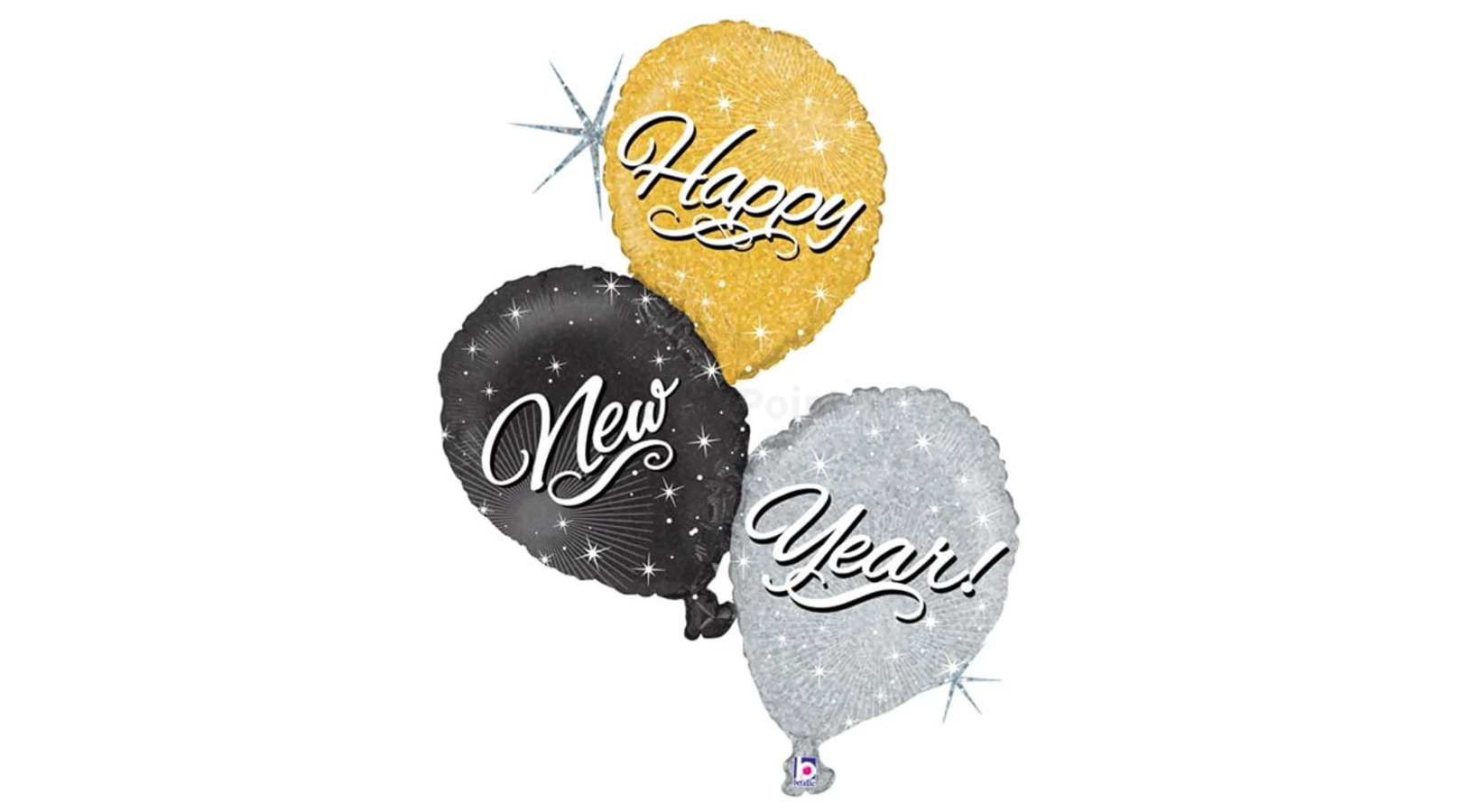 101 cm-es Happy New Year felirat, 3 részes fólia lufi