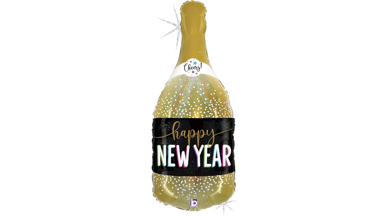 91 cm-es hologramos Happy New Year pezsgősüveg fólia lufi