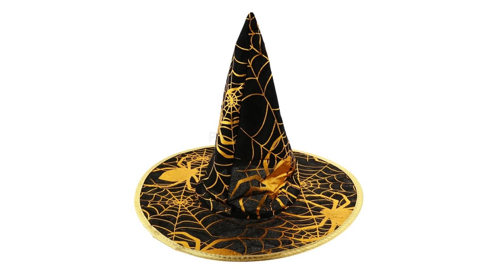 Arany pókhálós boszorkánykalap. Lehet farsang vagy Halloween, ezzel a kalappal garantált a siker egy beöltözős, jelmezes bulin. Kombináld jelmez kiegészítőinkkel.