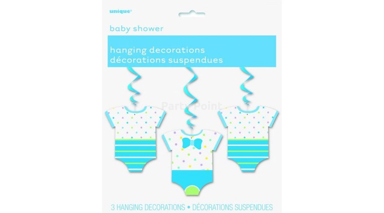 Ha a családba, rokonságba, baráti társaságba egy édes újszülött kisfiút "hoz a gólya", ezzel a 3 darabos függő dekorációval kihirdetheted a kis csecsemő megérkezését! A dísz mellé elhelyezhető néhány színes gumi- és fólia léggömb is.