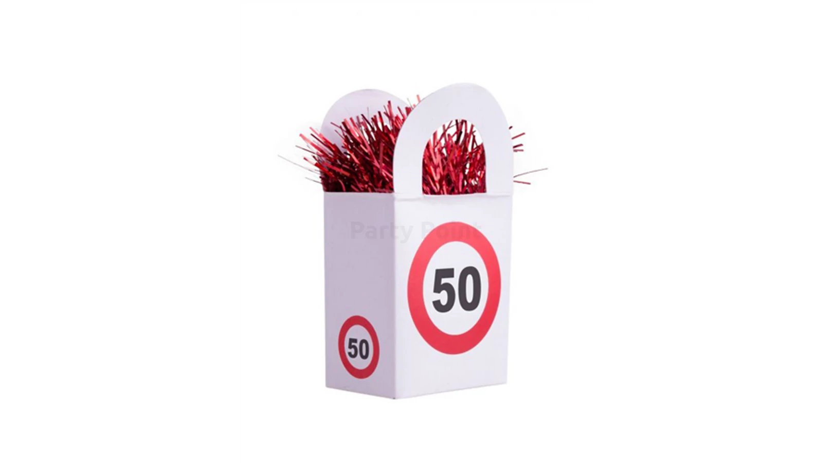 Behajtani tilos 50. születésnapra lufisúly. Születésnapi dekorációhoz elengedhetetlen kellék ez a vidám, alkalomhoz illő számozott lufisúly ami egyben asztaldíszként is használható. Kiegészíthető egyszínű, vagy printelt születésnapi gumi vagy fólia léggömbökkel!