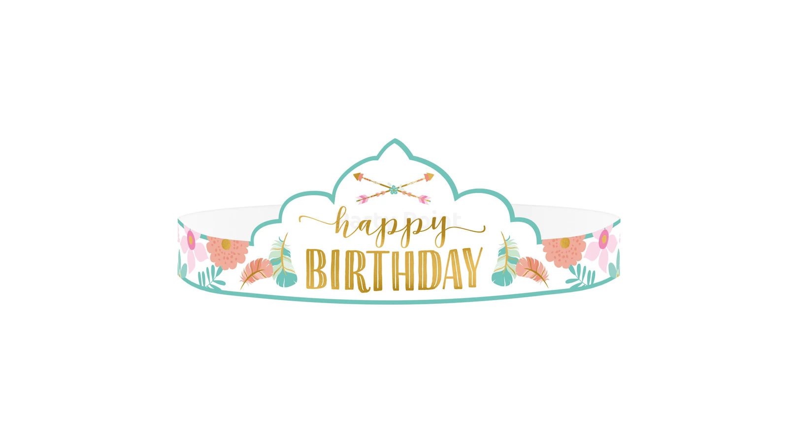 Boho Birthday Girl - Happy Birthday virágos-arany papírtiara 8db/cs