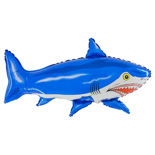 Kék cápa fólia lufi. Kisfiúknak nagyszerű meglepetés lehet születésnapra, névnapra vagy gyerek napra ez a menő, cápás fólia léggömb. Szülinapi partyn, díszítésként is jól mutat; kiegészíthető alkalomhoz illő gumi léggömbökkel és feliratokkal. Mérete kb. 70 cm. Levegővel és héliummal is tölthető; önzáró szeleppel rendelkezik.