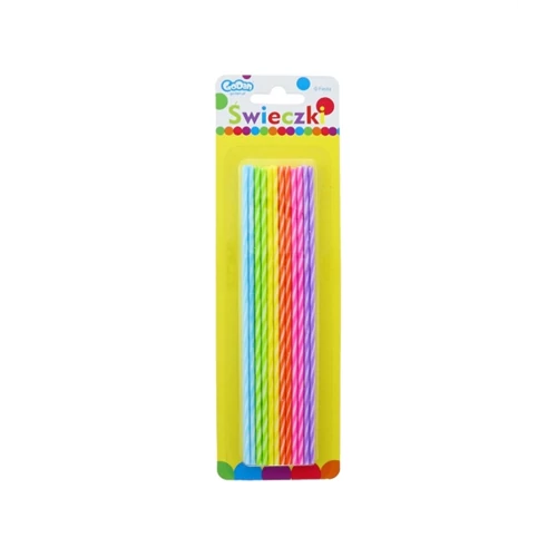 Csavart színes gyertya, mérete: 2,6 x 17 cm. 24 db/csomag.