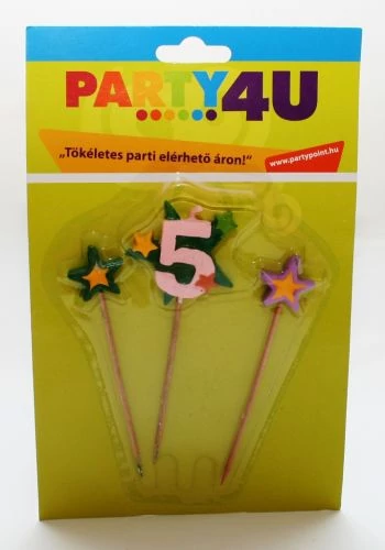 Csillagos-számos gyertya '5' 3 db/cs.
