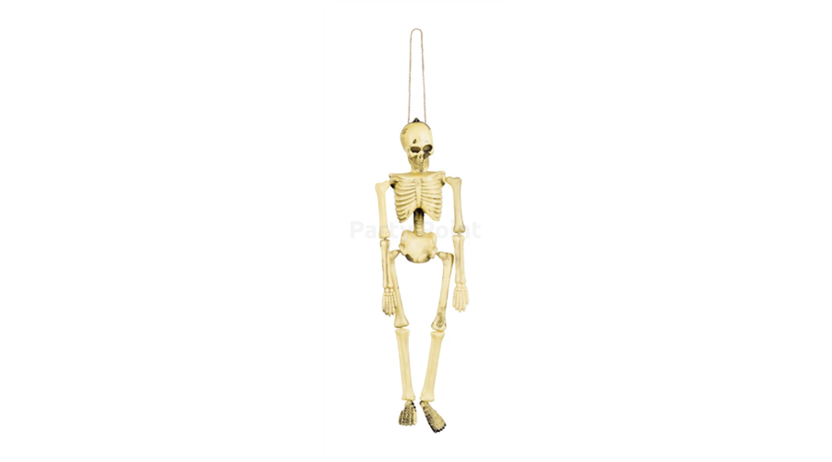 Csontváz dekoráció, 40 cm. Egy igazán izgalmas Halloween partyra, nélkülözhetetlen a megfelelő díszítés. Dobd fel a bulit, és használd ezt a kísérteties csontváz dekorációt. Kiegészíthető különböző Halloween-i függőkkel, girlandokkal és pókhálókkal is.
