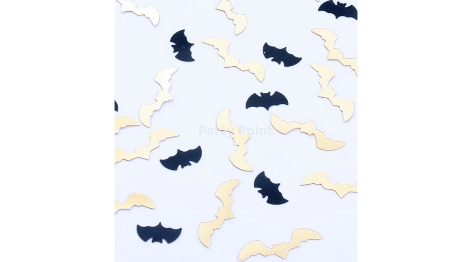 Denevér formájú fekete-arany metál konfetti 15 g. Egy igazán izgalmas Halloween partyra, nélkülözhetetlen a megfelelő dekoráció. Díszítésként használd ezt a denevér formájú konfettit. Kiegészíthető különböző Halloween-i girlandokkal és lampionokkal.