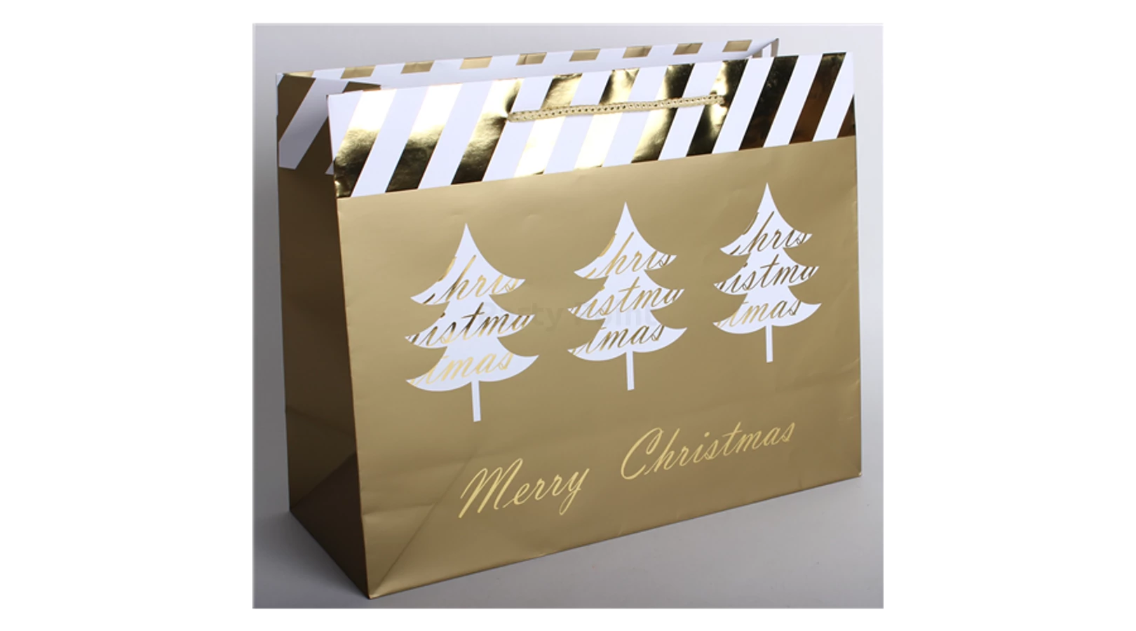 Dísztasak arany-fehér fenyőfa 23 x 18 cm