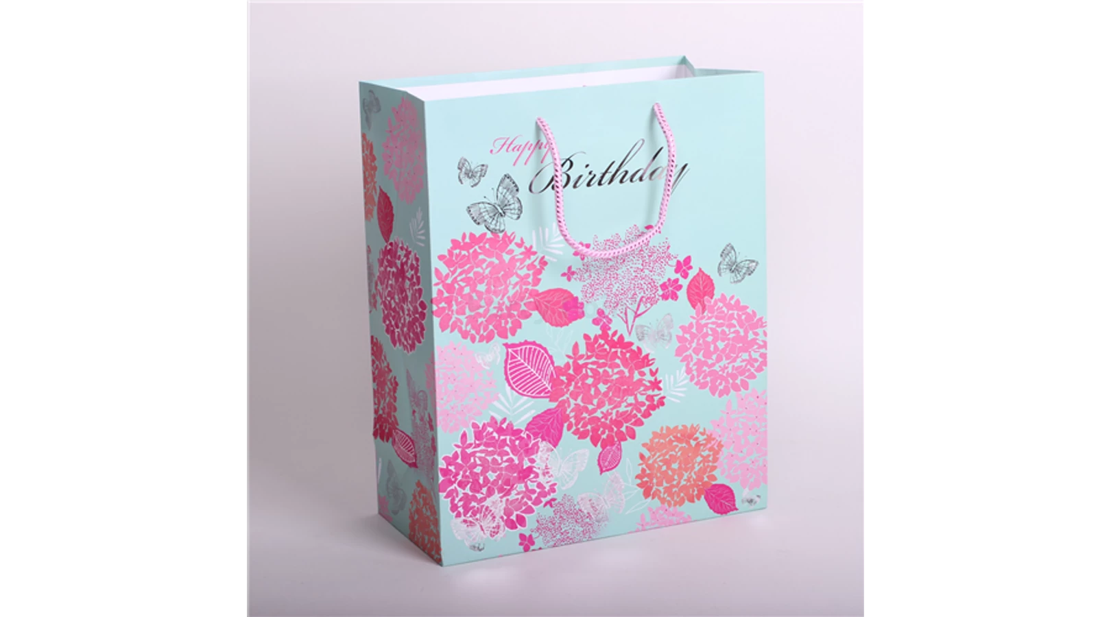 Dísztasak Happy Birthday virágos 14 x 11 cm