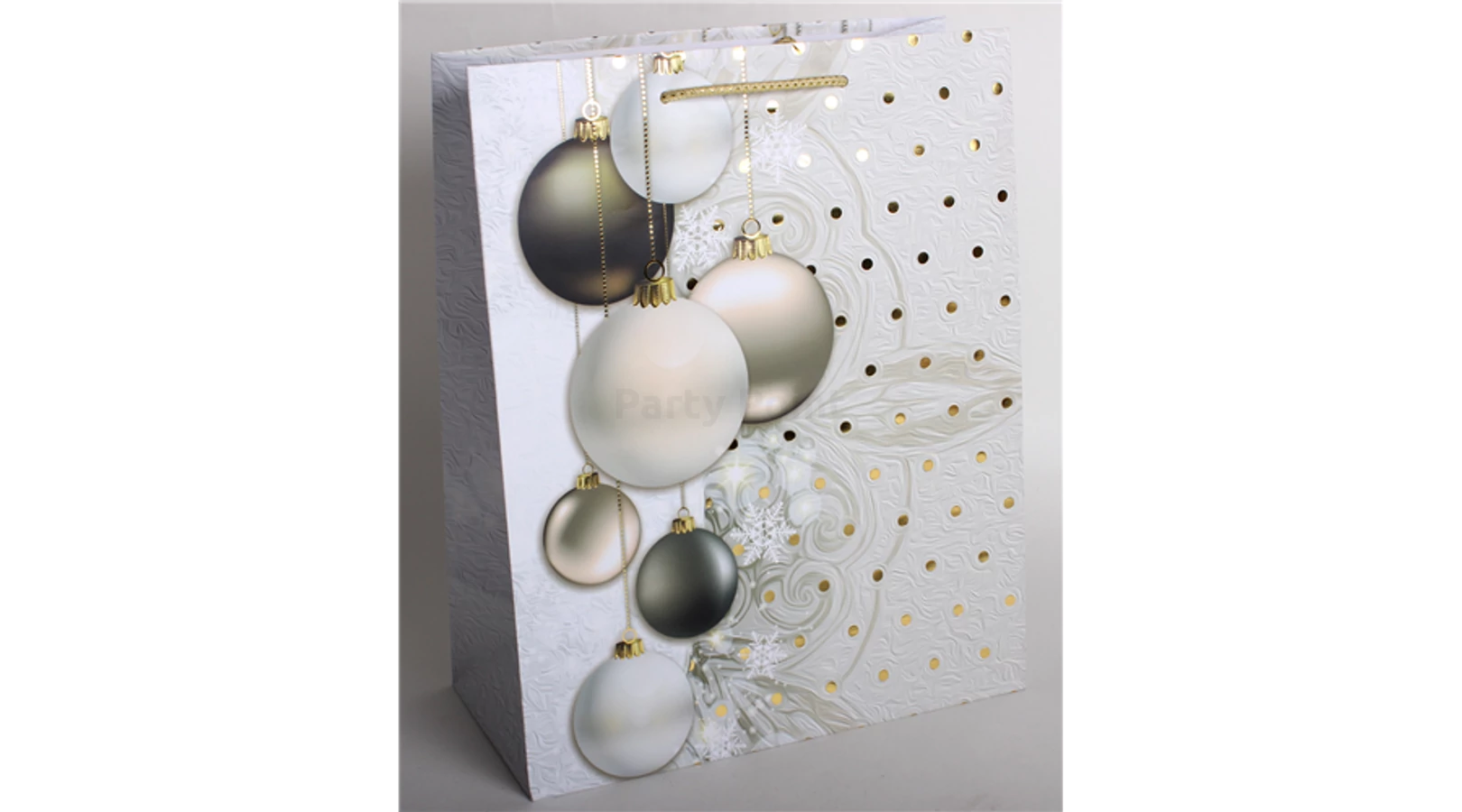 Dísztasak karigömb krém 36 x 10 cm. Rejtsd karácsonyi ajándékaidat, ebbe az ünnepi hangulatot idéző, krém, gömb mintás dísztasakba!