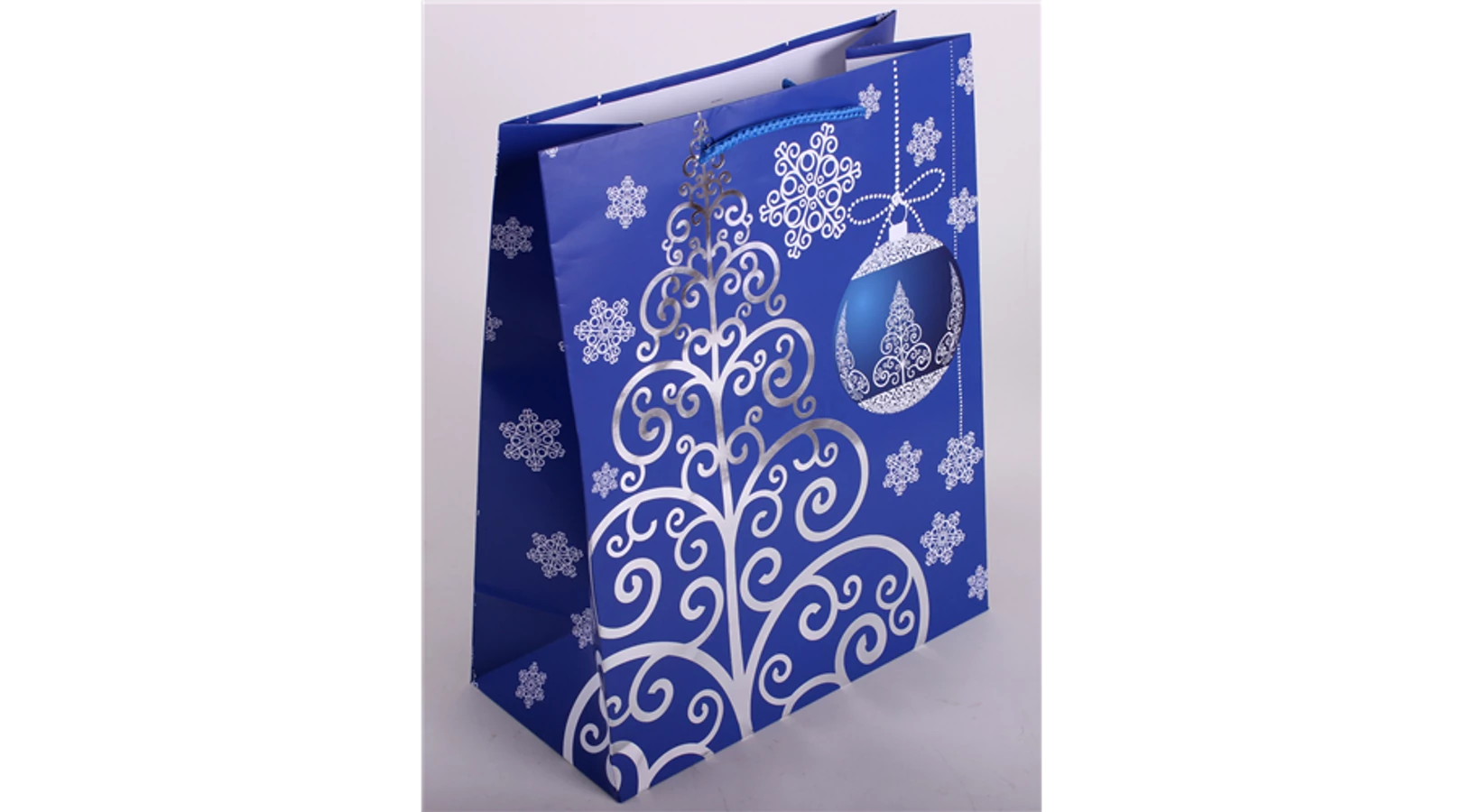 Dísztasak kék/fehér mintás 33x26 cm. Rejtsd karácsonyi ajándékaidat, ebbe az elegáns, ünnepi hangulatot idéző, kék-fehér dísztasakba!