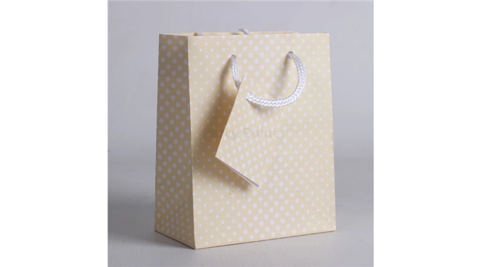 Dísztasak krém-fehér pöttyös 14 x 11 cm