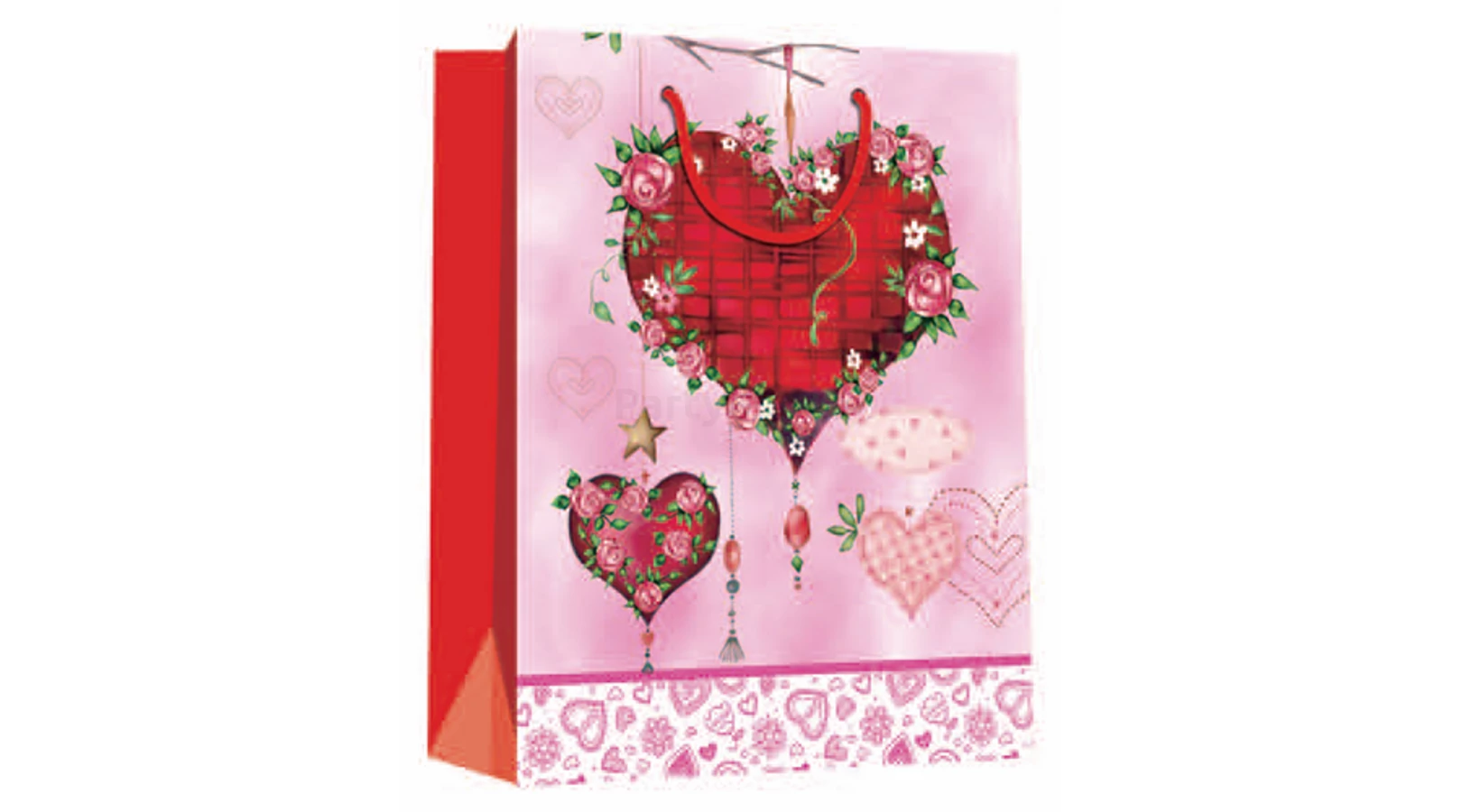 Dísztasak rózsaszín/piros szíves 14x11 cm
