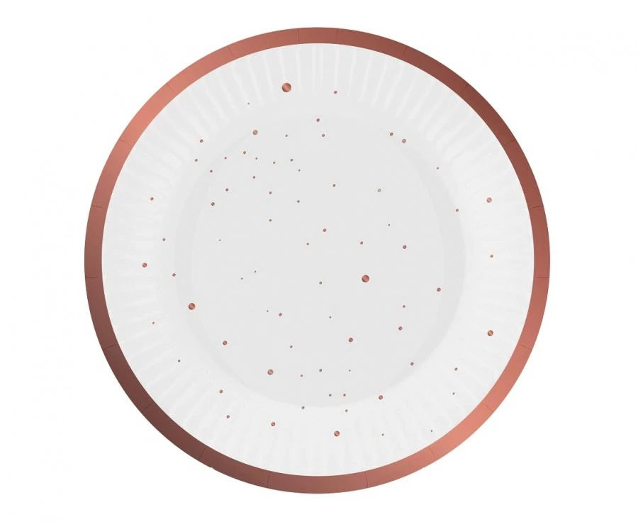 Elegáns fehér tányér rosegold mintával - 18 cm, 6 db / csomag
