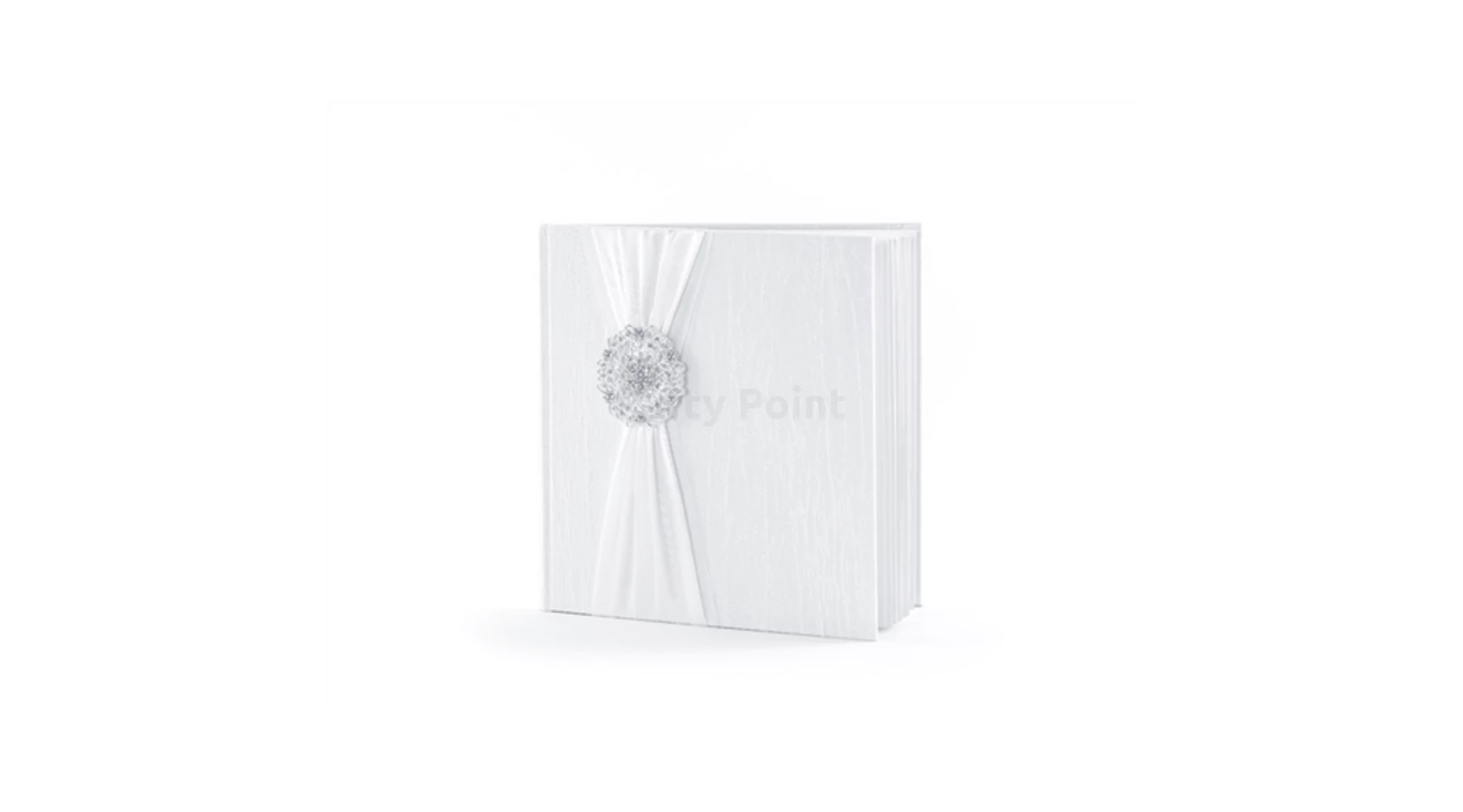 Esküvői fehér vendégkönyv rozettával - 22 lappal, 20,5 cm x 20.5 cm