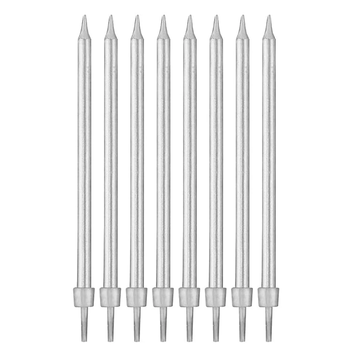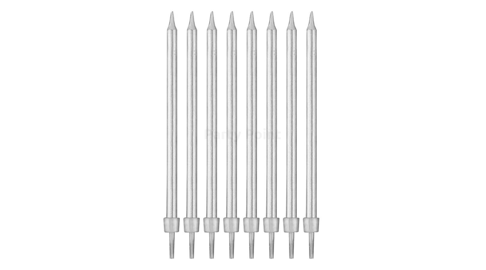 Ezüst gyertya - 8 db gyertya + 8 db tartó, 10 cm