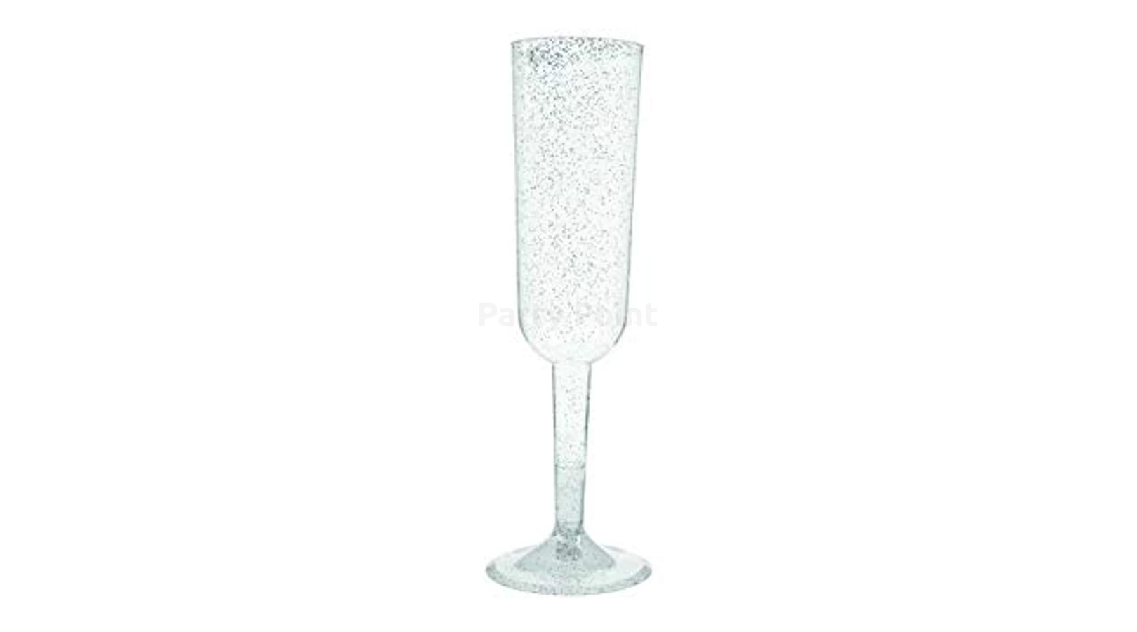 Ezüst színű, glitteres műanyag pezsgőspohár 4db/cs.