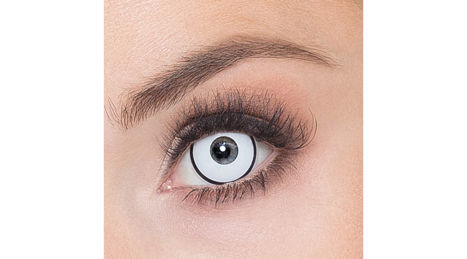 Fehér mániákus kontaktlencse 1 hetes. Elkezdődött a rémségek éjszakája! Éjfélt ütött az óra? Egy szuper Halloween partira vagy hivatalos? Akkor ezt a fehér mániákus kontaktlencsét Neked találták ki!
