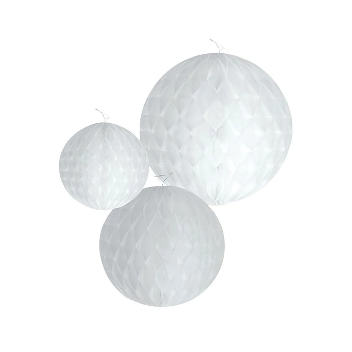Fehér színű gömb alakú papírdekoráció - 3 db / csomag