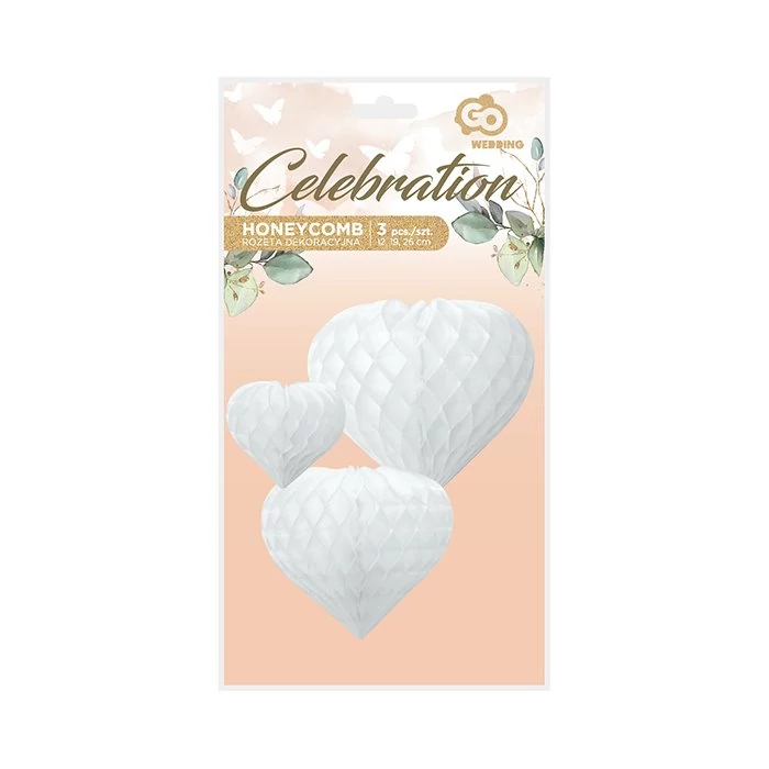 Fehér színű szív alakú papírdekoráció - 3 db / csomag. Ezzel a fehér színű szív alakú papírdekorációval igazán különlegessé teheted esküvőd hangulatát. Válassz hozzá színben illő eksüvői dekorációt. Papírdekoráció méretek: 12 cm, 19 cm, 26 cm.