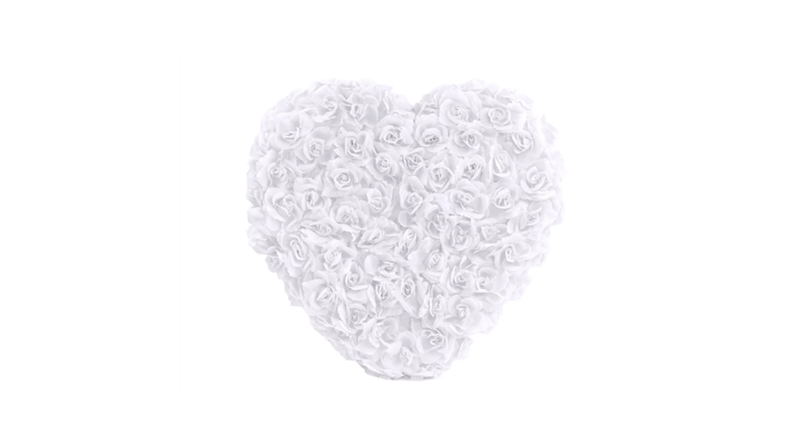 Fehér teli virágos szív dekoráció - 50 cm