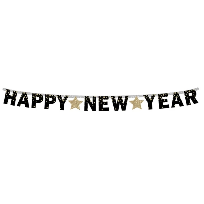 Fekete-arany Happy New Year füzér fólia háttérrel - 180 cm x 22 cm. Minden nagyszerű szilveszteri party alapja a megfelelő díszítés. Dobd fel a bulit, és válaszd dekorációként ezt a vidám, fényes, "Happy New Year" feliratot. Kiegészítheted hozzá illő gumi lufikkal, konfettivel és girlandokkal is.