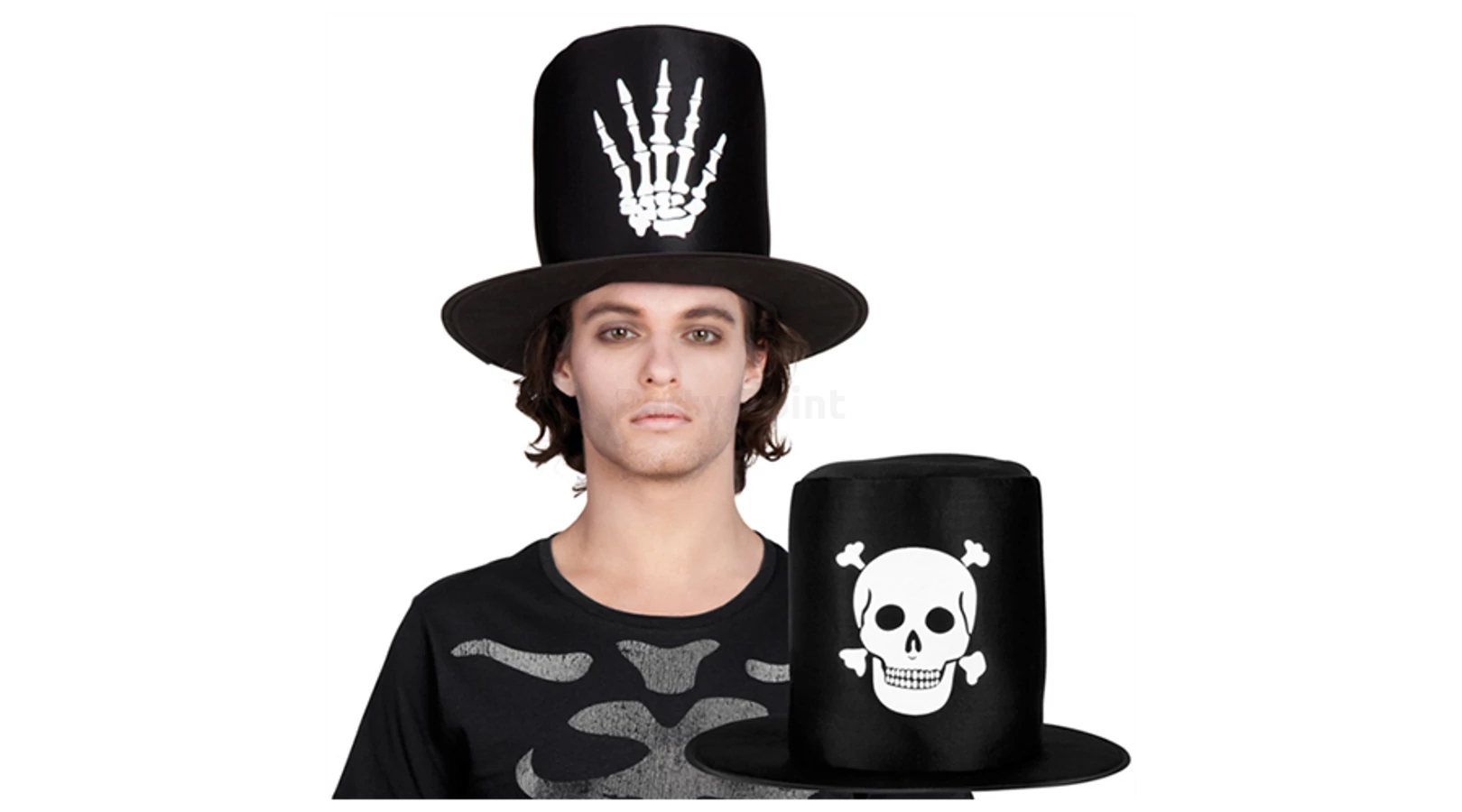 Egészítsd ki a Halloween jelmezedet ezzel a fehér mintával dekorált fekete cilinderrel! Viselhetsz hozzá parókát, szemmaszkot, koponya karkötőt és nyakláncot is. A cilinder kétféle mintával rendelhető: koponya és csontváz kéz. Rendeléskor jelezd,hogy melyiket szeretnéd.