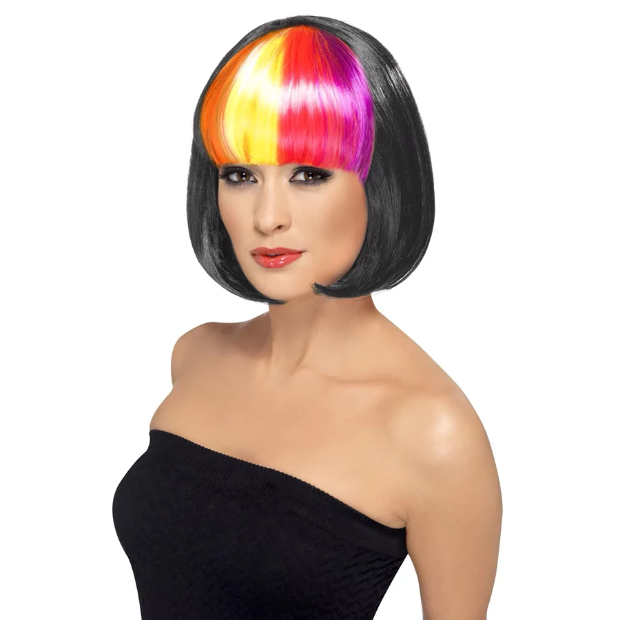 Ha szeretnél egy szuper szexi frizurát viselni farsangkor, vagy szilveszterkor, akkor ezt a fekete és szivárvány színű kleoptára parókát Neked találták ki és még a fodrászt sem kell meglátogatnod! Egészítsd ki hozzá illő boával és szemüveggel is.