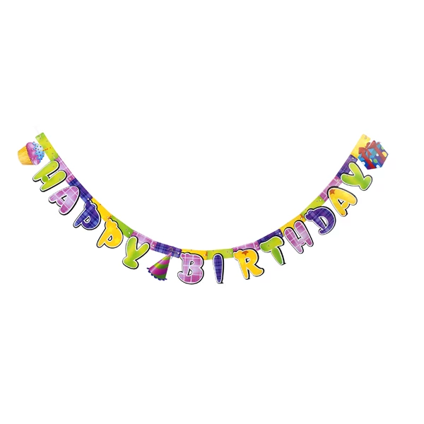 Ezzel a Happy Birthday mintás felirattal minden ünneplővel tudathatod, hogy számodra elérkezett az egész évben várva várt nagy nap! Indulhat a buli! A dekorációt feldobhatod néhány léggömb, lampion-, vagy girland dísszel is.