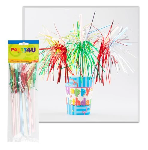 Fóliás pálma szívószál, 24 cm. 12 db/csomag. Feldobnád a születésnapi, vagy szilveszteri party dekorációt? Válaszd ezeket a színes, fóliás pálma szívószálakat. A teljes összhang érdekében, egészítsd ki a terítéket, hozzá illő, színes parti tányérral, pohárral és szalvétával is.