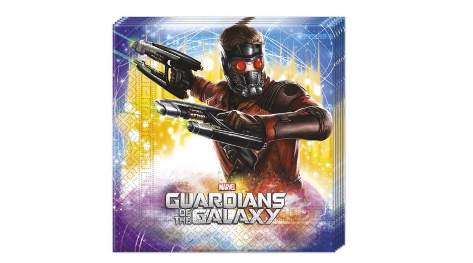Galaxis őrzői szalvéta, 33 x 33 cm, 2 rétegű. 20 db/csomag. Feldobnád a kisfiad születésnapi dekorációját? Válaszd ezt a menő, Galaxis őrzői szalvétát. A teljes összhang érdekében, egészítsd ki a terítéket, hozzá illő party tányérral, pohárral és asztalterítővel is.