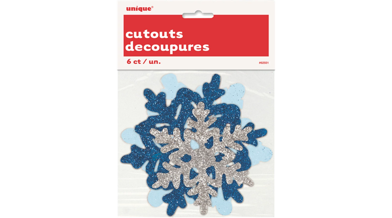 Hópehely függő dekoráció glitteres, 6 db/cs.