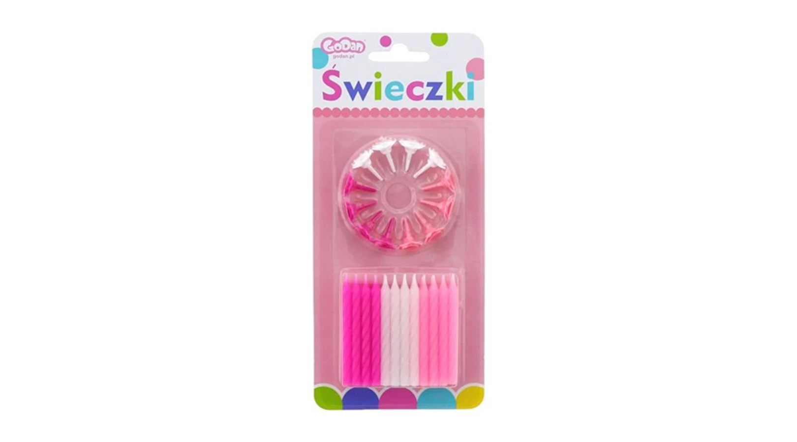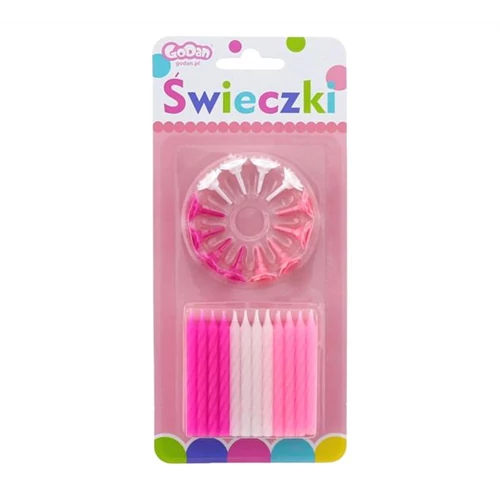 Gyertya tartóval pink-fehér színben - 6 cm, 12 db / csomag