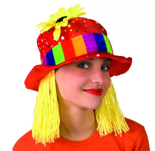 Ugye szeretnéd megnevettetni a gyerekeket? Esetleg azt tervezed, hogy bohócnak öltözöl be szilveszterkor, vagy farsangkor? Bármelyik is legyen, a jelmezedet ezzel a bohóckalappal egészítsd ki, amelynek a tetején egy napraforgó van és sárga paróka lóg ki alóla. Egészítsd ki mókás bohóc cipővel is.