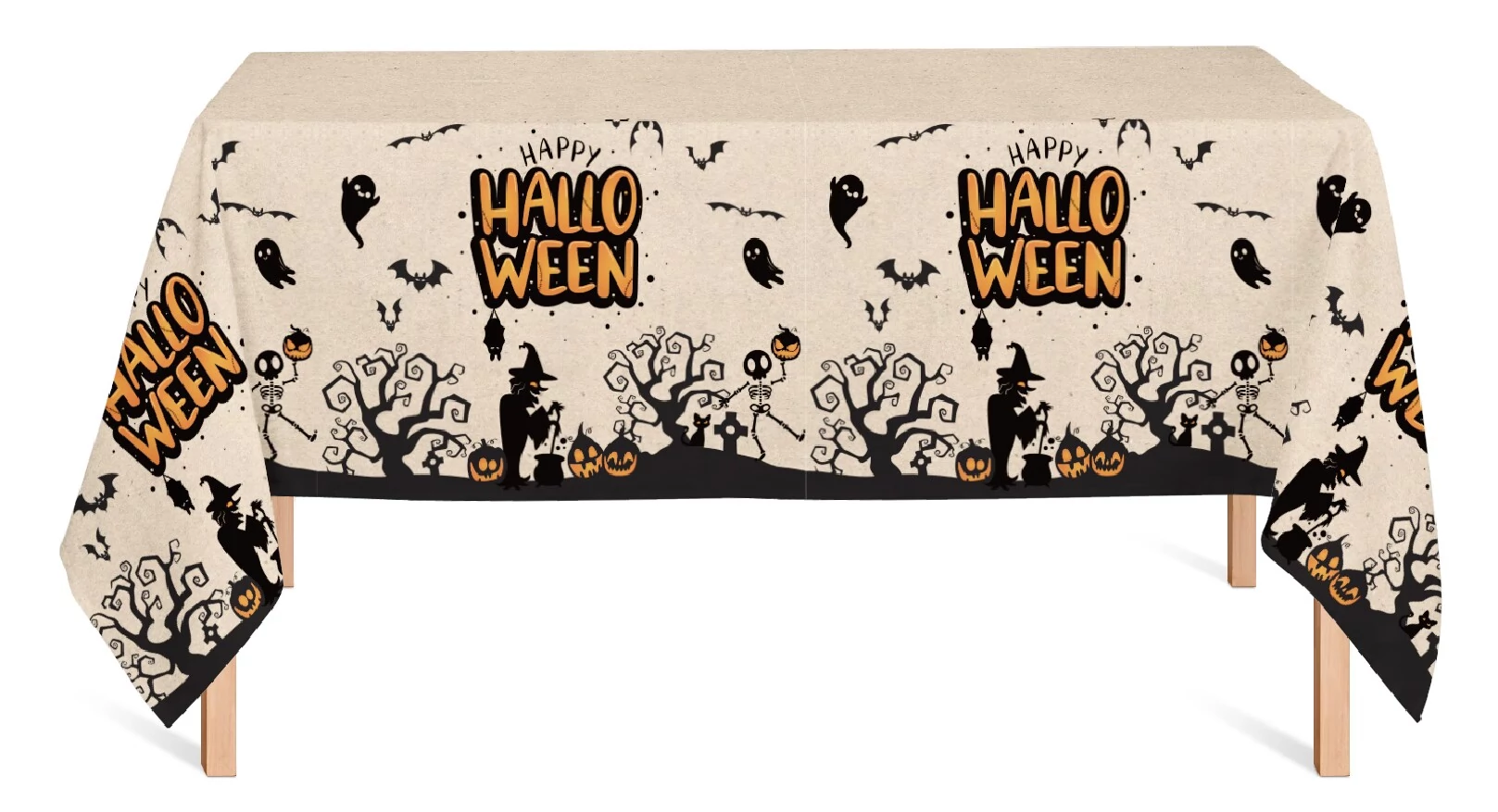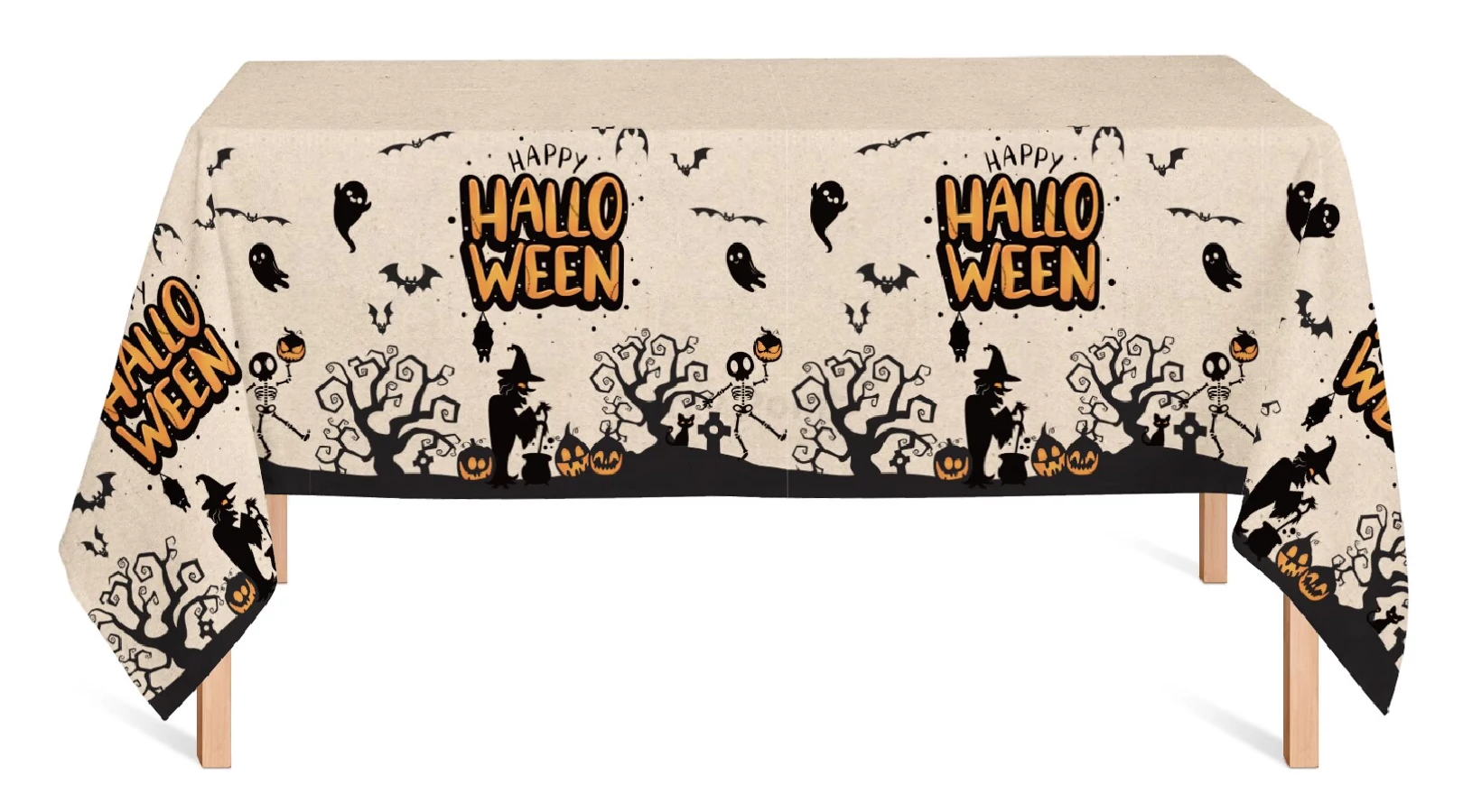 Halloween mintás natúr műanyag asztalterítő 130x180 cm. A halloweeni party fontos hozzávalója a teríték. Válaszd ezt az asztalterítőt és garantált a jó hangulat!
