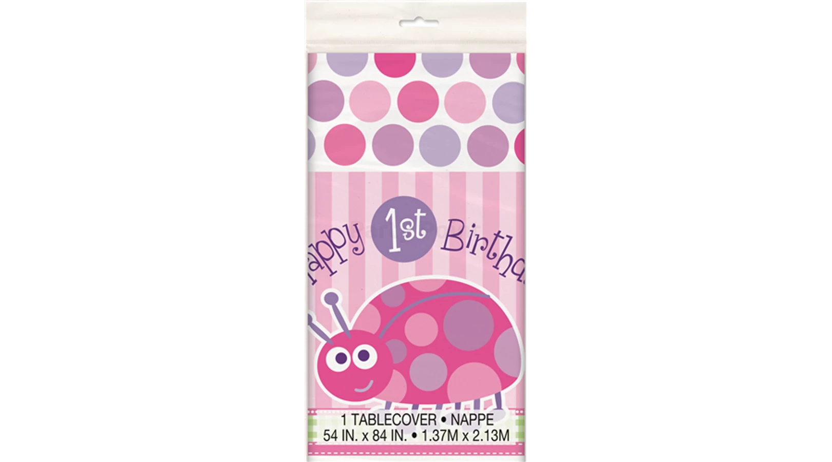 Happy 1st Birthsday katicás asztalterítő lányknak 1,37 x 2,13 m