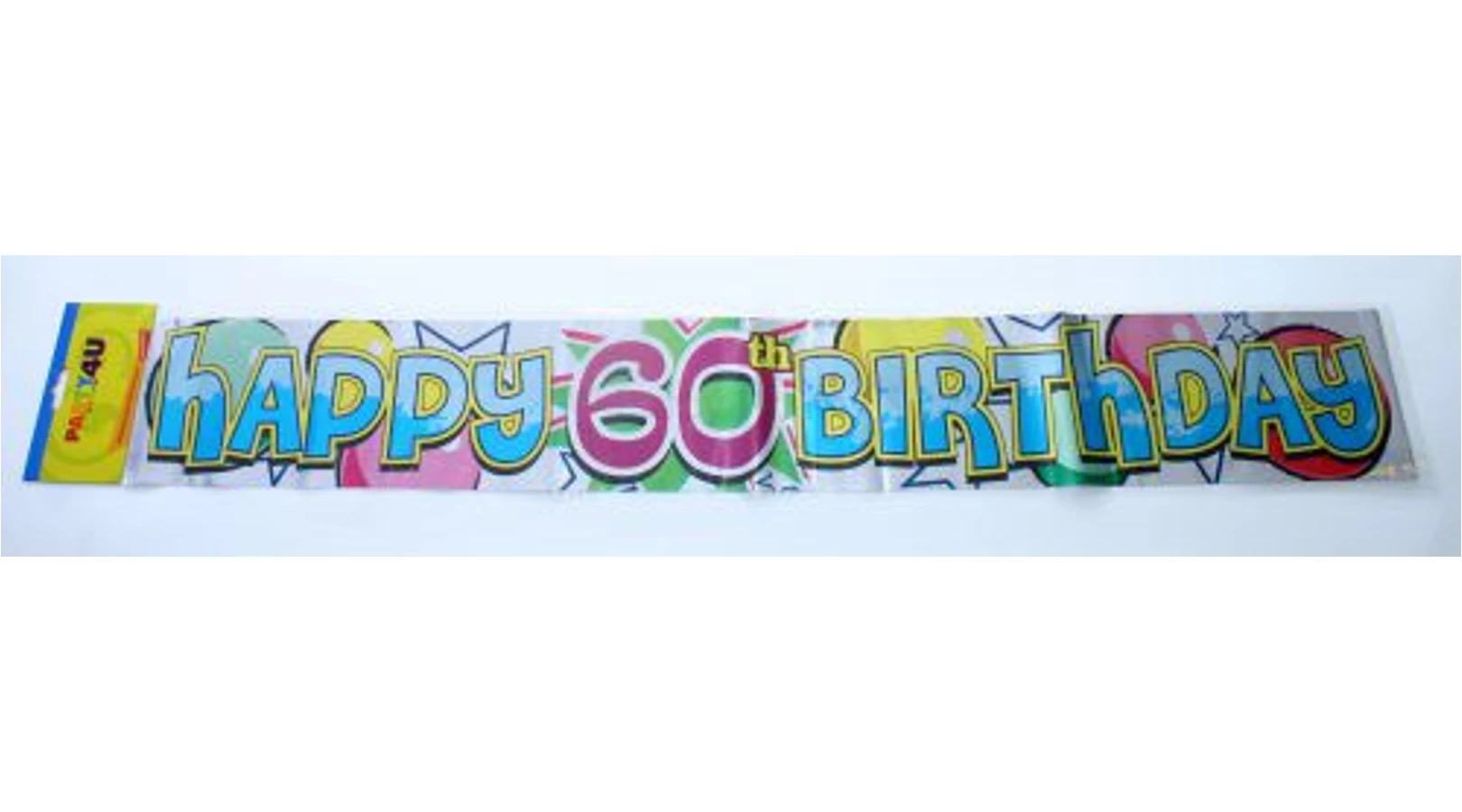 Happy 60. Birthday fólia felirat 3,6 m. Egyetlen igazán nagyszerű születésnapi buliból se maradhat ki a vidám, ünnepi dekoráció. Válaszd ezt a színes, számozott feliratot a party helyszín feldíszítéséhez! Kiegészíthető hozzá illő gumi lufikkal, fólia léggömbökkel és szülinapi zászlókkal is.