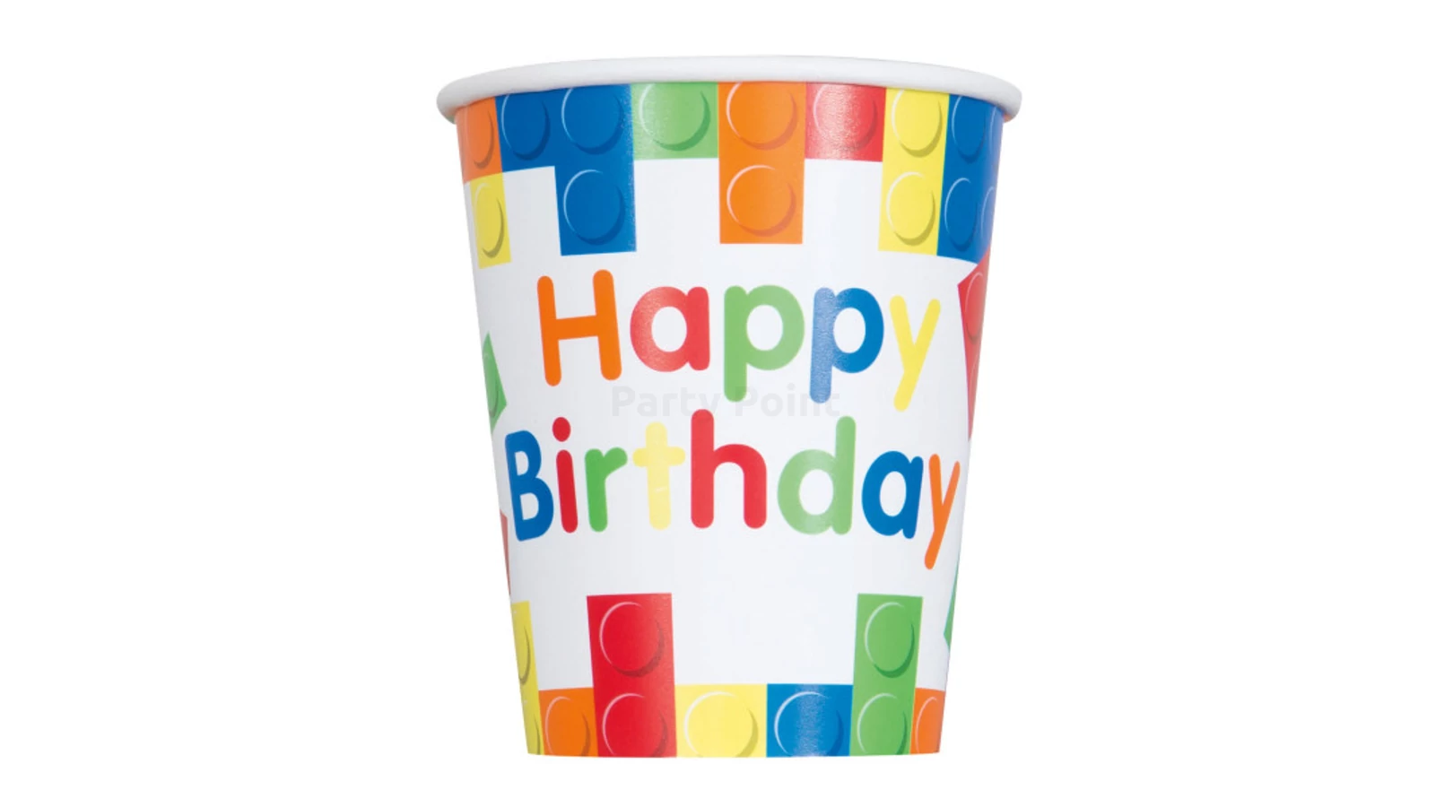Születésnapi bulikra ajánljuk ezt a színes, legó mintás poharat, melyet kiegészíthetsz hozzá illő tányérral, szalvétával, csákóval vagy lufival. A csomag tartalma: 8 db.