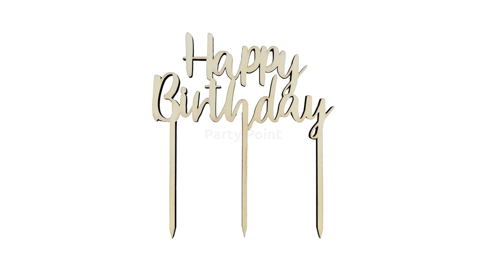 Happy Birthday tortadekoráció fából - 13 cm X 14 cm