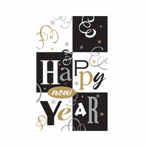 Happy New Year műanyag asztalterítő. Feldobnád a szilveszteri party dekorációt? Válaszd ezt a vidám, "Happy New Year" feliratú asztalterítőt. A teljes összhang érdekében, egészítsd ki a terítéket, hozzá illő parti tányérral, pohárral és szalvétával is.