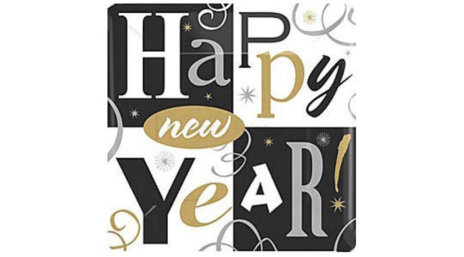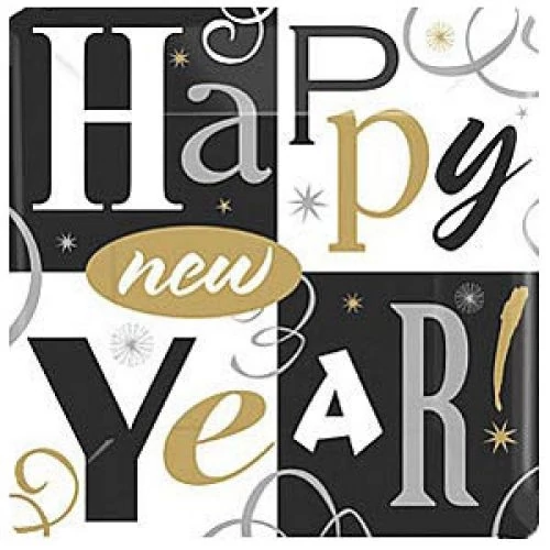 Happy New Year papírtányér 26 cm 8db/cs. A szilveszteri parti asztalt dekoráld ezzel a Happy New Year feliratos tányérral, melyet kiegészíthetsz a hozzá illő szalvéta, pohár együttesével. A csomag 8 db, 26 cm-es tányért tartalmaz.